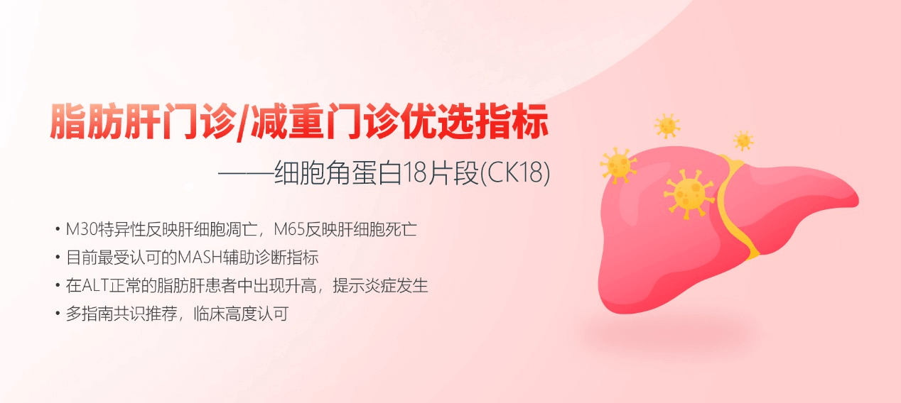 CK18-M30/M65檢測為MASH的篩查和診斷貢獻了一種簡單易行的方法,為脂肪肝門診、健康體檢中心、內分泌科等管理MASH及合并糖尿病患者的健康狀況提供了重要參考,同時可以補充ALT對慢性炎癥檢測的不足,揭開脂肪肝炎癥的神秘“面紗”。
